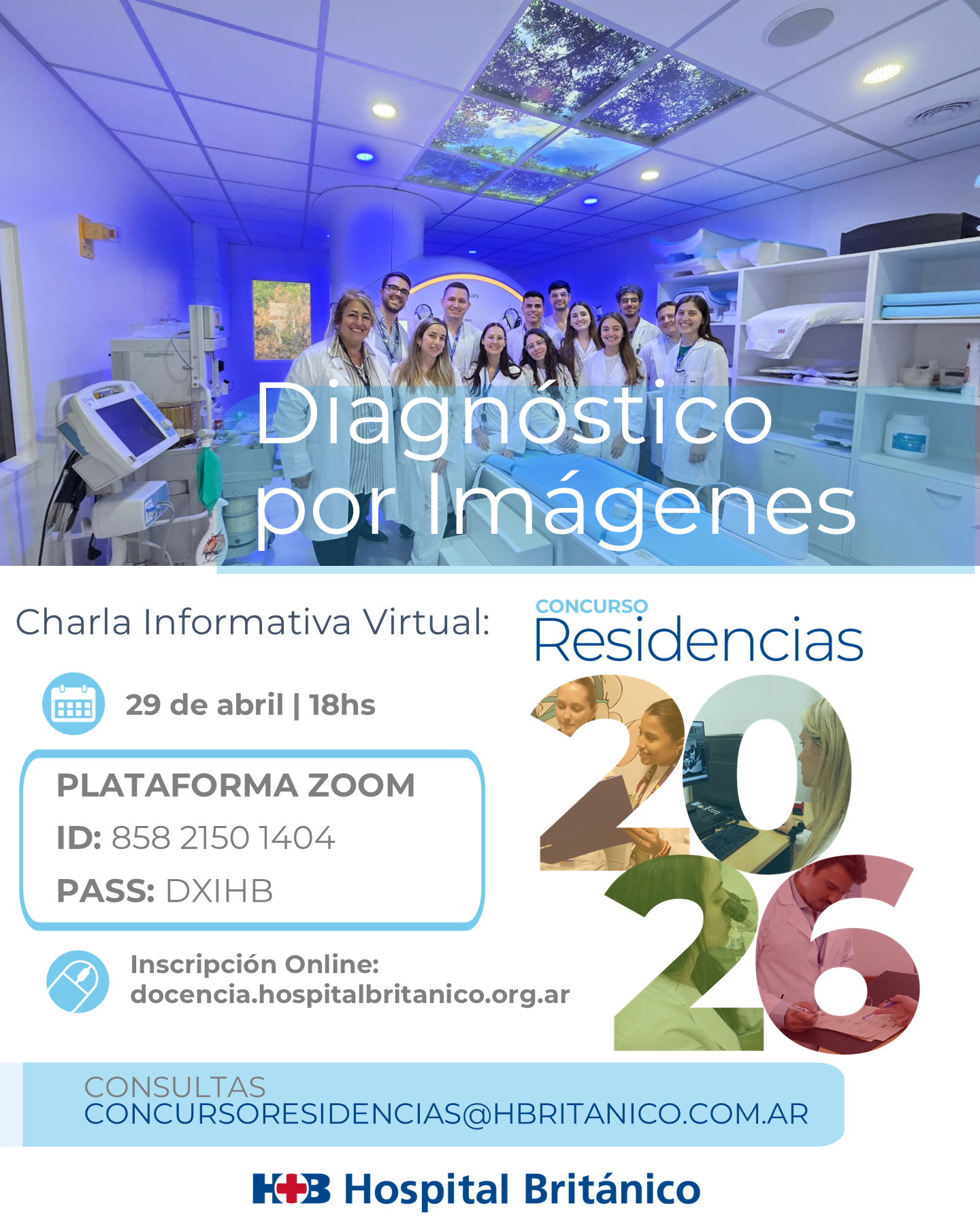 Charla dirigida a postulantes interesados en la residencia de Diagnóstico por Imágenes. La actividad será en modalidad virtual y de acceso gratuito, pensada como un espacio para brindar información y acompañar a quienes estén evaluando esta opción formativa.